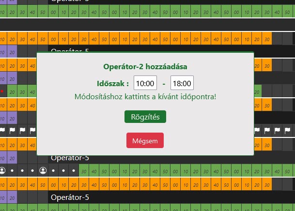 Ebben az ablakban van lehetőség az adott operátor elérhetőségi idejének beállítására. Amennyiben helyesek az adatok, a Rögzítés gombra való kattintással tudod azokat véglegesíteni.