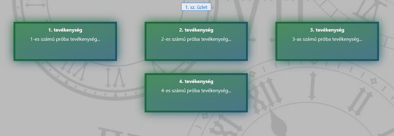 A megjelenő képernyőn a létrehozott üzleteket valamint a hozzájuk kialakított helyiségeket fogod látni. A tevékenységek hozzárendeléséhez kattints a kívánt helyiségre, melyet követően az alábbihoz hasonló táblázatot fogsz látni: